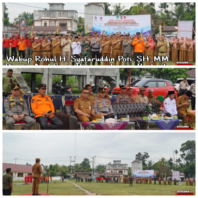 Apel siaga bersama digelar di Lapangan Bazoka, Kecamatan Kepenuhan Hulu, dan dipimpin langsung oleh Wakil Bupati Rohul, H Syafarudin Poti S.H, M.M.